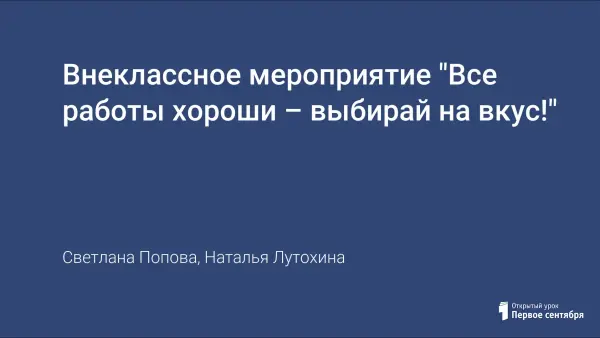 Внеклассное мероприятие "Все работы хороши – выбирай на вкус!"