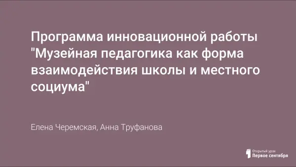 Программа инновационной работы "Музейная педагогика как форма взаимодействия школы и местного социума"