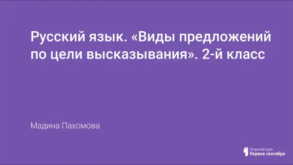 Цель урока: формирование знаний о видах предложения по цели высказывания: вопросительное, повествовательное, побудительное.