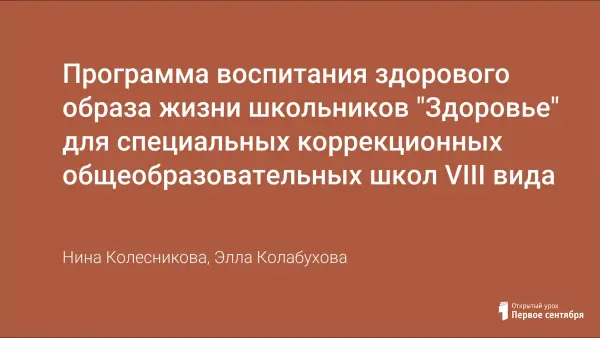 Программа воспитания здорового образа жизни школьников "Здоровье" для специальных коррекционных общеобразовательных школ VIII вида