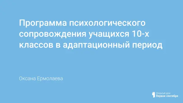 Программа адресована учащимся 10-х классов, педагогическому коллективу и родителям с целью оказания помощи всем субъектам образовательного процесса в адаптационный период. Программа реализуется в нескольких направлениях: диагностика, профилактика, просвещение и консультирование.