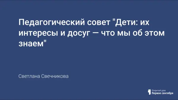 Педагогический совет в нашей школе - это рабочий процесс всего педагогического коллектива. И администрация школы должна сделать его интересным, чтобы каждый участник педсовета смог реализовать свои возможности в ходе творческой работы. Обновлённый подход к организации досуговой деятельности учащихся - объективное требование времени. Что же предстоит сделать, в каких направлениях работать – эти вопросы стали предметом обсуждения нашего педагогического коллектива.