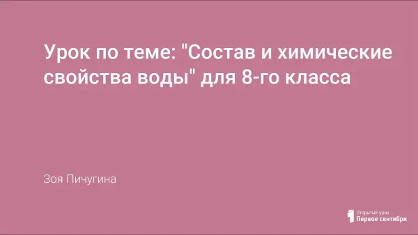 Урок предназначен для учащихся 8-го класса. Изучение данной темы учитель проводит в тесном сотрудничестве с учащимися, которые на основе представлений о типах химических реакций, составе простых и сложных веществ, о химических свойствах изученного ранее класса кислот изучают химические свойства воды. Урок сопровождается достаточным количеством химических экспериментов. В конце урока учащимся предоставляется возможность проверить усвоенный материал в форме тематического дифференцированного тест-контроля. Проводится рефлексия урока.