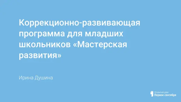 Коррекционно-развивающая, психолого-педагогическая, авторская, апробированная программа работы с обучающимися, испытывающими трудности в обучении. Направлена на преодоление проблем и компенсацию недостатков, а именно коррекцию и развитие познавательных способностей и когнитивной сферы в целом. Программа создана в связи с необходимостью выравнивания уровня актуального развития у дошкольников и младших школьников. Проводится по запросу родителей.