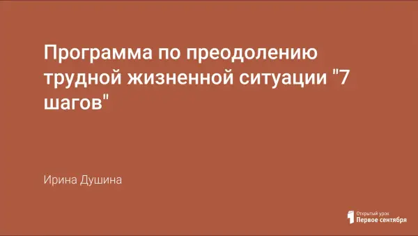 Цель программы: помочь подростку принять ситуацию, решить проблему, на которую он не может повлиять. Задачи: осознание и принятие проблемы, изменение отношения к ней, снижение тревожности, закрепление новых типов поведения, отношения к кризисной ситуации.
