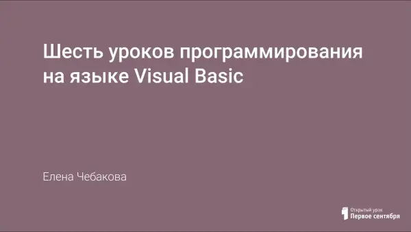 Программа по изучению языка программирования VisualBasic базируется на системе из 6 уроков, где каждый урок последовательно знакомит учеников со средой программирования, выполняет главную задачу по изучению языка VisualBasic и развивает у школьников логические и творческие способности, а также воспитывает важные личностные качества: умение работать в команде, самостоятельно принимать решения, быть ответственным и объективным в самооценке.
