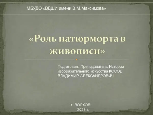 Цель работы: выявить особенности натюрморта как важной составляющей части живописного произведения.
