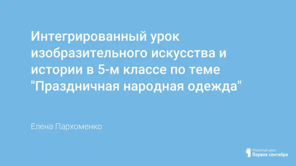 Интегрированный урок изобразительного искусства и истории в 5-м классе "Праздничная народная одежда" переносит детей в мир истории народной культуры, знакомит с образным строем праздничного народного костюма, его структурой, символикой орнамента и цвета. Данная тема рассматривается как важный этап формирования эстетического вкуса школьников.