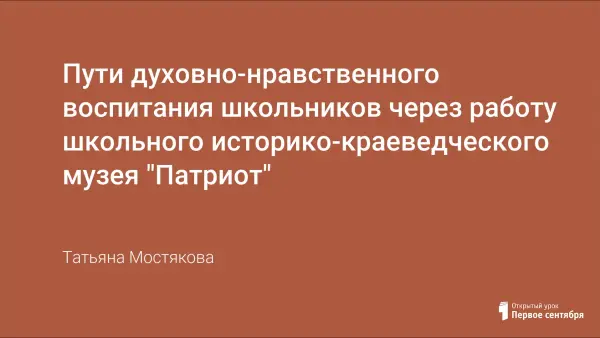 В статье автор делится своим опытом работы по духовно-нравственному воспитанию школьников на примере организации школьного историко-краеведческого музея «Патриот».