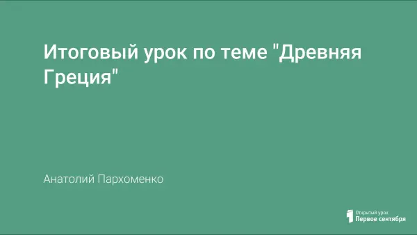 Урок истории для 5-го класса разработан с применением нестандартных форм обучения. Урок-игра позволяет не только проверить качество знаний учащихся по теме "Древняя Греция", но и активно способствует развитию творческой личности. Объем заданий для итогового повторения подобран с учетом учебных возможностей класса. Во время игры все присутствующие вовлечены в игровую деятельность, как участники, так и болельщики. Данный урок проводится в учебное время, но возможен вариант и в форме внеклассного мероприятия.