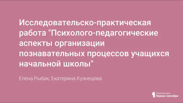 Цель работы – разработка эффективных мер, направленных на организацию и коррекцию познавательных процессов «неудобных» учащихся младшей школы образовательными психолого-педагогическими средствами и оценка их эффективности.