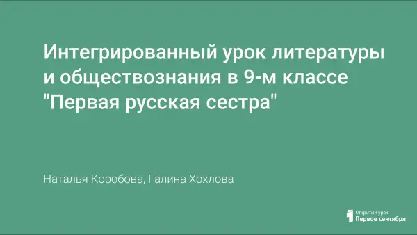 Интегрированный урок литературы и обществознания в 9-м классе "Первая русская сестра"