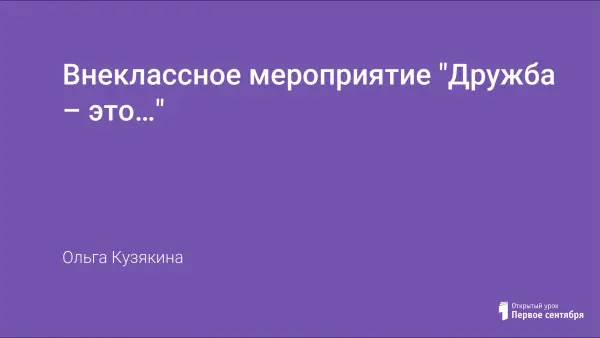 Внеклассное мероприятие разработано в рамках курса «Самосовершенствования личности», оно способствует совершенствованию понятия дружбы, воспитанию культуры общения. В ходе классного часа ребята размышляют над понятиями дружба, добро, душевность, конфликт, общение. Сами пытаются сформулировать правила, при которых может существовать настоящая дружба. Итогом мероприятия является тестовая разминка, которая помогает выявить, какими друзьями являются присутствующие дети.