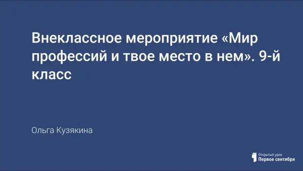 В 9-м классе начинается работа с учащимися по выбору будущей профессии. С этой целью проводится мероприятие, на котором ребята знакомятся с особенностями профессий. В ходе занятия выявлены факторы, влияющие на выбор будущей профессии. Мероприятие формирует осознанность, ответственность за выбор будущей профессии. Улучшается климат в классе.