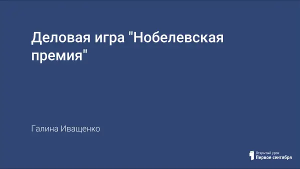 Деловая игра "Нобелевская премия" выявляет умения учащихся анализировать исследовательские работы. В ходе игры представлены работы "Алмазный фонд России", "История герба России" и "История Олимпийских игр". Кто из кандидатов получит "Нобелевскую премию" - зависит от полноты и глубины изложения темы. Но главная цель игры - самореализация и самовыражение детей.