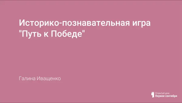 Историко-познавательная игра проводится как итоговое мероприятие в рамках недели истории. Самореализация учащихся прослеживается на каждом этапе игры. Каждая из трёх команд – «Танкисты», «Военные медики» и «Лётчики» – показывает не только знания истории Великой Отечественной войны, но и результаты изучения родного края, работы с ветеранами.