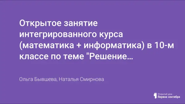 На открытом интегрированном уроке вторично осмысливаются знания по теме "Решение уравнений", отрабатываются умения и навыки по их применению в среде программирования КУМИР.