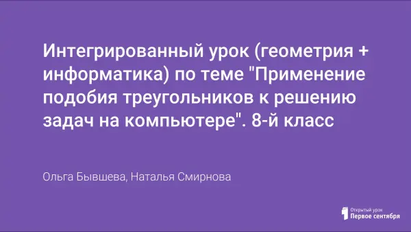 Интегрированный урок (геометрия + информатика) по теме "Применение подобия треугольников к решению задач на компьютере". 8-й класс