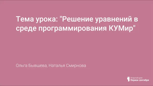 Тема урока: "Решение уравнений в среде программирования КУМир"