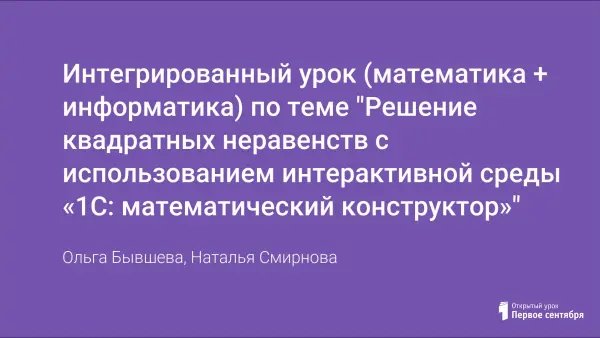Интегрированный урок (математика + информатика) по теме "Решение квадратных неравенств с использованием интерактивной среды «1С: математический конструктор»"