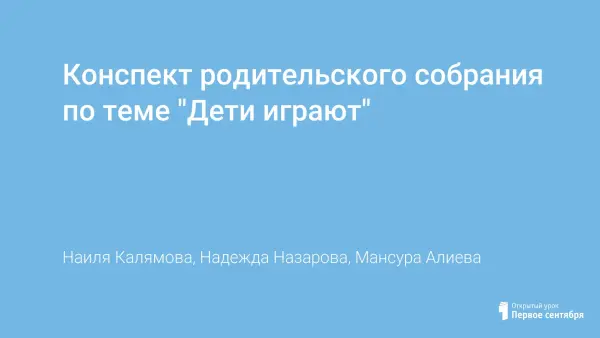 Конспект родительского собрания по теме "Дети играют"