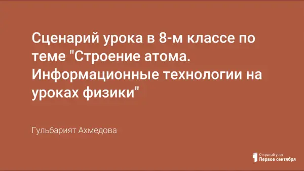 Объяснение нового материала. Звездочёт задаёт учащимся вопросы. Учитель говорит о Д.И. Менделееве и его открытии. После чего объясняет работы Э.Резерфорда и Содди. Учитель объясняет опыт Резерфорда, делает вывод с помощью учащихся. Учащиеся отве-чают о схожести строения атома с Солнечной системой. Учитель даёт определение модели атома. Ребятам задаётся кроссворд, который они должны отгадать за минуту. Затем закрепляется новый материал в виде небольшого теста. Собираются тесты и выставляются оценки. Домашнее задание в виде различных головоломок и параграфа.