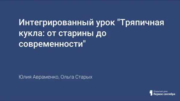 Занятие дает учащимся возможность узнать о таком культурном феномене как народная кукла и попробовать сделать тряпичную куклу своими руками. Особенностью можно считать интеграцию предметов история и технология. Изучение и изготовление кукол проходит в форме краткосрочного коллективного проекта.