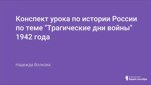 В статье представлен конспект урока истории России по теме "Трагические дни войны 1942 года". Урок изучения новой темы из опыта работы с учащимися профтехучилища № 4 г. Ижевска. Материал урока адаптирован для этой категории учащихся. К сожалению, не удалось представить видеофильмы, использованные на уроке (большие по объему). Тема урока напрямую связана с работой музея ГОУ НПО "ПУ № 4", с поисковым движением учащихся, поэтому вторая часть урока проходит в музее училища. Желающие получить видеофрагменты могут обратиться по указанному адресу, и просьба будет выполнена.