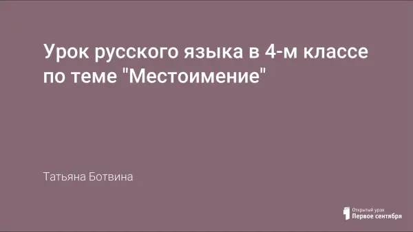 Урок формирует общее понятие о местоимении. На основе характеристики местоимения ученики определяют его отличие от других частей речи.
