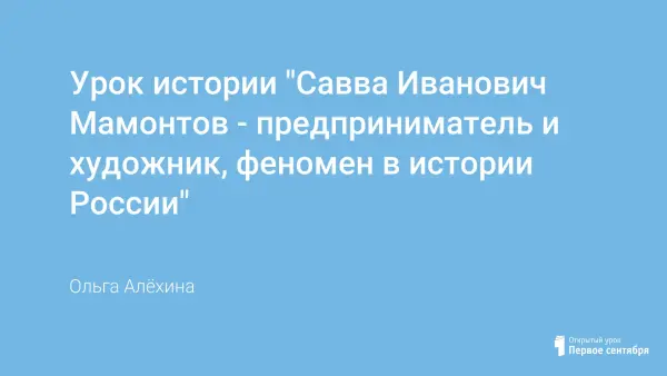 Представленная работа является уроком - историческим портретом феномена русской истории Саввы Ивановича Мамонтова.