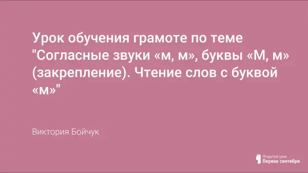Урок направлен на закрепление полученных знаний о букве м, звуках [м], [м']; формирование умений выделять новые звуки, определять их местоположение в слове, различать мягкие и твердые согласные; на отработку навыка слогового чтения слов с изученными буквами.