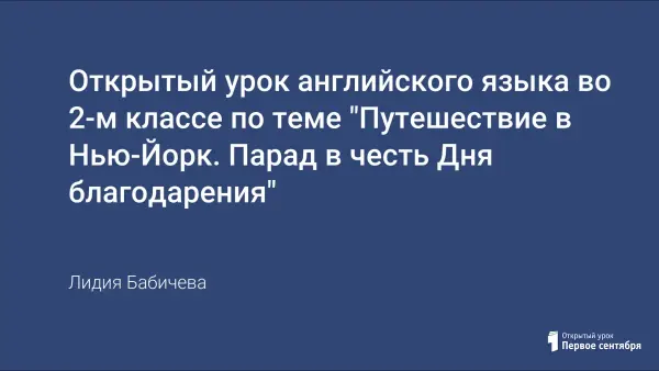 Урок разработан в виде игры, является обобщающим уроком по теме «Путешествие в Нью-Йорк. Парад в честь Дня благодарения». Основные задачи данного урока – совершенствование произносительных, лексических, грамматических навыков, навыков каллиграфии и навыков чтения по транскрипции, умения работать в группе и в паре.