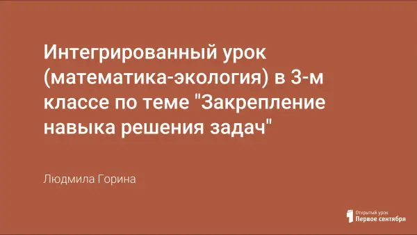 Представлен конспект интегрированного урока по математике и экологии в 3-м классе (Программа "Школа Росии"). На материале по экологии закрепляются умения решать задачи изученных видов. Урок способствует прочному усвоению знаний, развитию любознательности и расширению кругозора младших школьников.