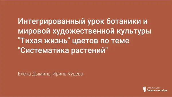 Интегрированный урок ботаники и мировой художественной культуры "Тихая жизнь" цветов по теме "Систематика растений"