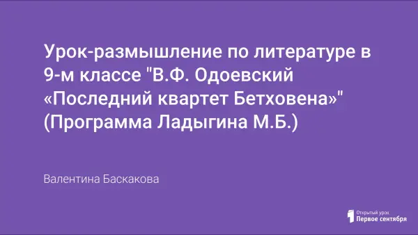 Урок знакомит учащихся с жизнью и творчеством Одоевского, Бетховена, приобщает ребят к миру прекрасного.