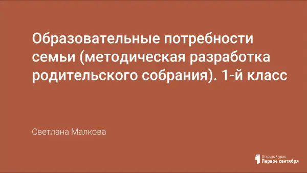Представлена методическая разработка родительского собрания для родителей обучающихся первых классов. Позволяет определить ожидания родителей первоклассников от обучения детей в школе, сопоставить данные представления с целями и задачами современного школьного образования в соответствии с требованиями ФГОС, актуализировать понимание необходимости совместных действий родителей и учителей по достижению обучающимися качественного результата образования. Форма проведения – деловая игра (работа в группах). Основной метод – мозговой штурм.