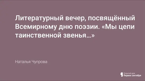 Литературный вечер – одна из форм внеурочной работы по предмету, которая повышает интерес к изучению литературы, воспитывает чувство любви и уважения к ней. Это, пожалуй, одна из наиболее действенных форм внеклассной работы в школе, которая в большей степени развивает творческие способности учащихся (навыки выразительного чтения, театрального мастерства и т.д.). Данный литературный вечер приурочен к Международному Дню поэзии 21 марта.
