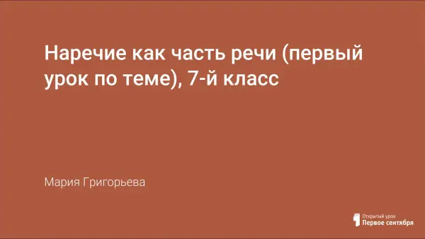 Это первый урок из двух по теме "Наречие как часть речи". Традиционная форма урока объяснения нового материала сочетается с использованием элементов ролевой игры и информационно-компьютерных технологий, что способствует активизации зрительной памяти и мыслительной деятельности учащихся, а также позволяет сэкономить время на уроке.