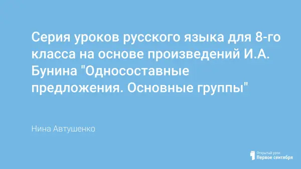 Серия уроков по теме «Односоставные предложения», построенных на творчестве великого русского поэта и писателя И.Бунина. Когда урок построен на творчестве одного поэта или писателя, учащиеся лучше усваивают учебный материал. Во-первых, глубже усваивается творчество писателя, во-вторых – наряду с орфографическими и синтаксическими правилами рассматриваются языковые средства, которые научат детей умению находить нужные, неповторимые слова.