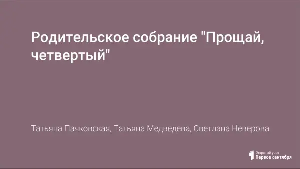 Собрание состоит из многих конкурсов и проходит в форме награждения учеников и их родителей в различных номинациях («Юный грамотей», «Золотой циркуль», «Юный диктор», «Спортивные успехи-2008», «Юный Пикассо», «Будущая Примадонна», «Лучшие мама и папа»). Основной целью этого родительского собрания является демонстрация родителям достижений в работе с детьми, а также для улучшения контакта между учениками, родителями и учителями.