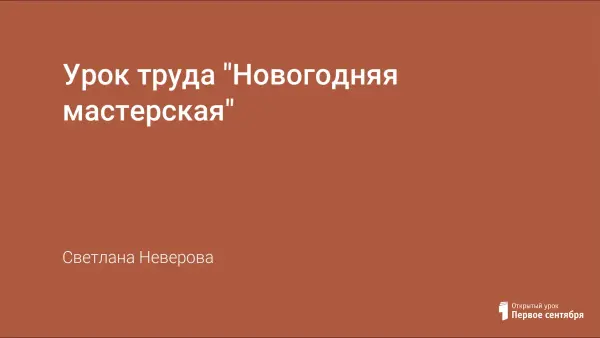 "Сегодня у нас необычный урок труда. Мы попадём в мастерскую Деда Мороза. Давайте постараемся, чтобы этот урок всем нам понравился, принес много пользы, чтобы вы сумели показать, чему научились за это время".