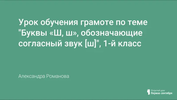 Урок обучения грамоте. Тема: "Буквы Ш, ш , обозначающие согласный звук [ш]". 1-1 класс. Урок с мультимедийной презентацией. Подобраны упражнения на развитие внимания, мышления, фонематического слуха. Продолжается работа над формированием навыка правильного, сознательного, выразительного чтения.
