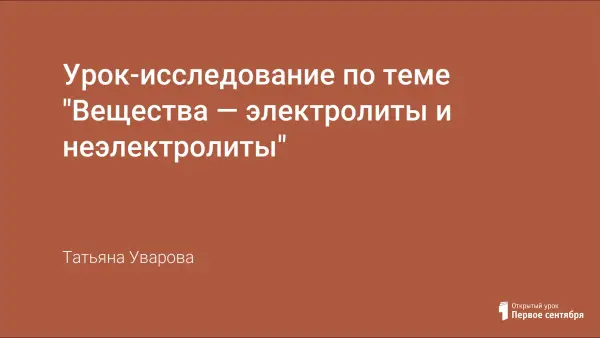 Урок химии формирует у учащихся понятия об электролитах как проводниках 2-го рода, неэлектролитах и электролитической диссоциации, о причине и механизмах диссоциации веществ.