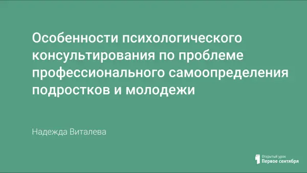 Проблема профессионального самоопределения актуальна и совпадает с возрастными кризисами и изменением задач обучения. Участвуя в процедуре профконсультации, клиенты развивают способность выбирать будущую профессиональную деятельность осознанно и самостоятельно. Обобщен опыт консультирования подростков и молодежи в выборе профессии на базе центра психолого-медико-социального сопровождения.