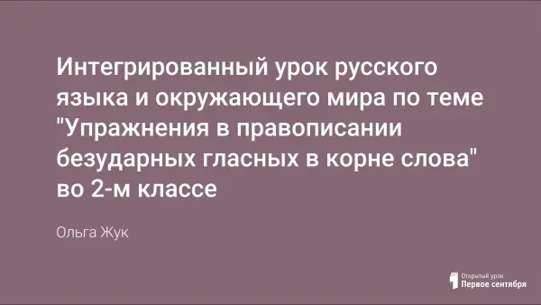 Интегрированный урок русского языка и окружающего мира по теме "Упражнения в правописании безударных гласных в корне слова" во 2-м классе.