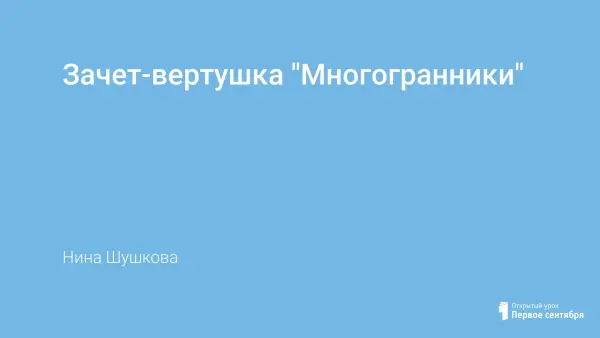 Зачет рассчитан на два урока, проверяет знания учеников по теме «Многогранники» и развивает практические умения решения задач.