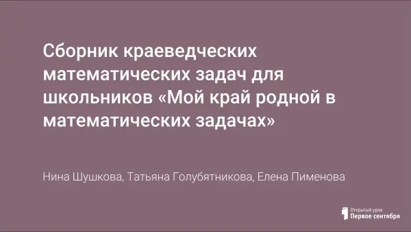Сборник краеведческих математических задач для школьников «Мой край родной в математических задачах»
