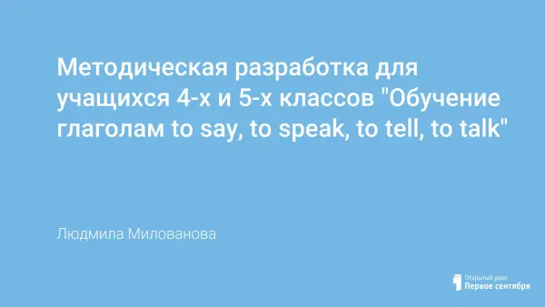 Задачей работы является развитие и закрепление умения правильно понимать и употреблять в речи глаголы to say, to speak, to tell, to talk в школах с углубленным изучением английского языка. Разработка включает все виды деятельности: чтение, говорение, аудирование и письмо. Особый акцент делается на упражнения, формирующие навык правильного употребления слова в контексте.