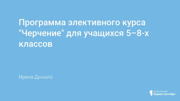 Программа элективного курса "Черчение" является продолжением программы "Основы графической грамотности" в начальной школе, опубликованной в прошлом году. Особенностью этой программы является то, что она рассматривается как самостоятельный учебный предмет, наиболее полно соответствует профилю подготовки школьников, обучающихся в гимназических математических классах, и учитывает образовательные потребности.