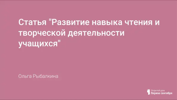 Чтение в начальной школе – органическая часть систематического курса литературы общеобразовательной школы. Её цель: формирование у учащихся читательских навыков, речевой и познавательной деятельности; усовершенствование методов и приёмов для успешного формирования беглого и осознанного чтения младших школьников в период обучения грамоте.